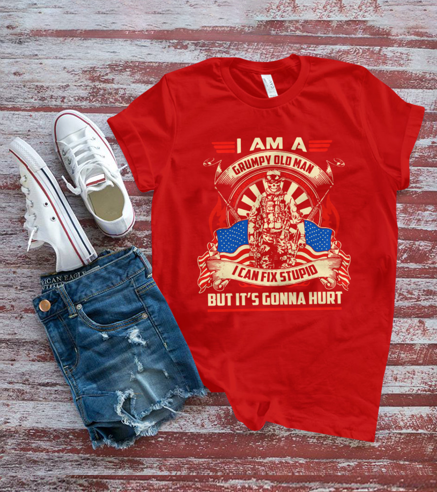 I Am A Grumpy Old Man I Can Fix Stupid But It's Gonna Hurt American Soldier Patriotic T-Shirt