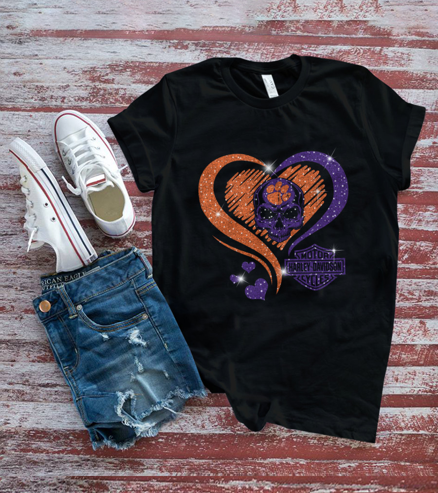 Clemson Tigers Harley Davidson Skull Heart T-Shirt