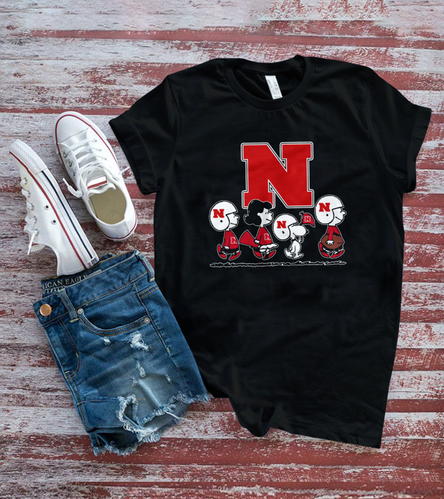 Peanuts Nebraska Cornhuskers Football Marching With Snoopy And Friends T-Shirt