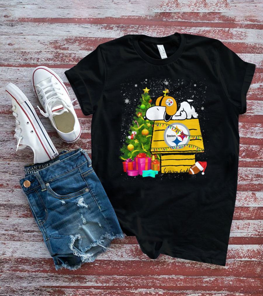 Pittsburgh Steelers Snoopy Christmas Peanuts Doghouse Football T-Shirt