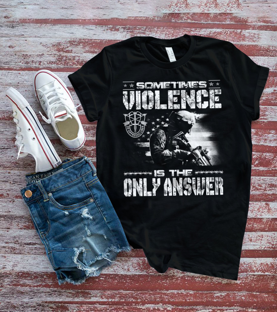 Sometimes Violence Is The Only Answer De Oppresso Liber Soldier American Flag T-Shirt