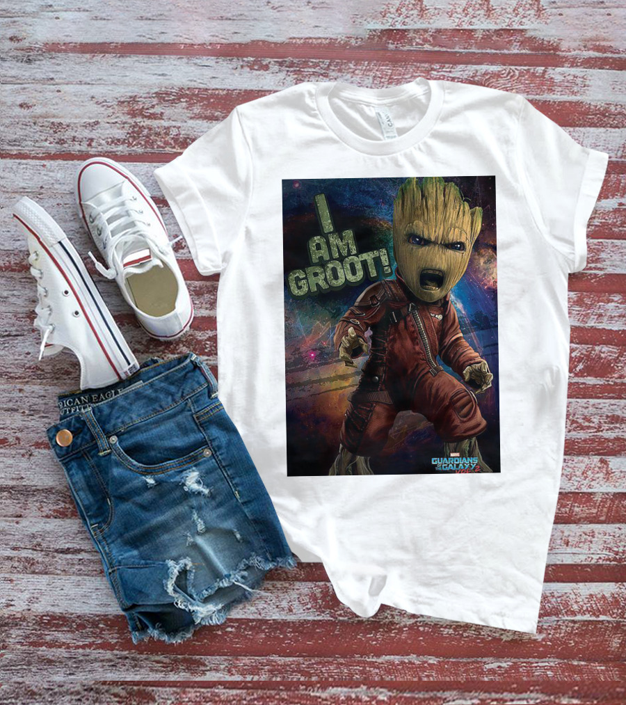 The I Am Groot Guardians of the Galaxy Vol. 2 Shirt offers a regular fit. Made from 100% ring-spun cotton that is pre-shrunk to help maintain size and shape after washing. Features reinforced construction details for durability. Available in U.S. standard sizes S-5XL to accommodate various body types.
