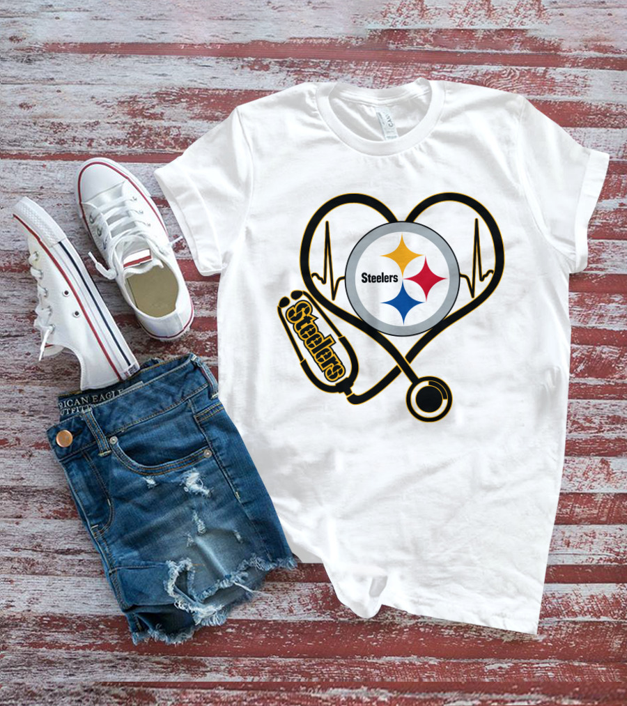 Nurse Love Steelers Heartbeat Stethoscope T-Shirt