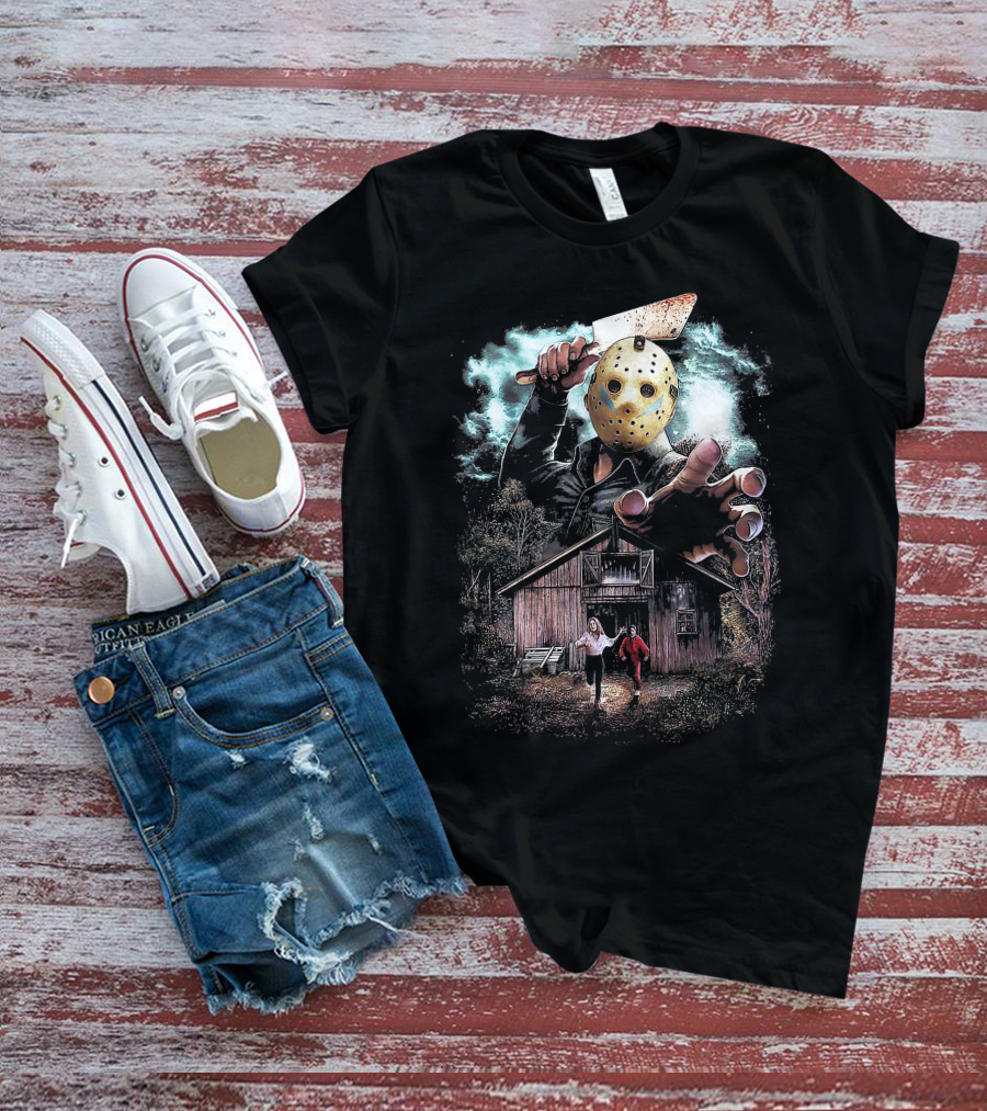 Friday The 13th Jason Voorhees Mask And Cabin Scene T-Shirt