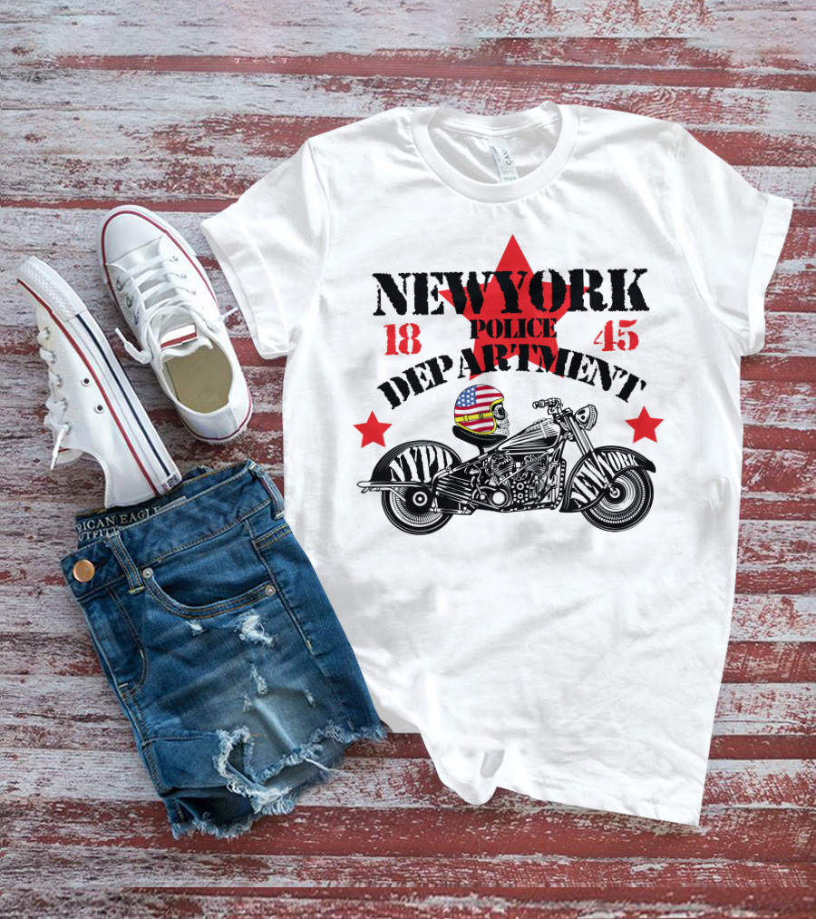 The NEWYORK Police Department 1845 NYPD Motorcycle Skull Helmet Stars Shirt offers a regular fit. Made from 100% ring-spun cotton that is pre-shrunk to help maintain size and shape after washing. Features reinforced construction details for durability. Available in U.S. standard sizes S-5XL to accommodate various body types.