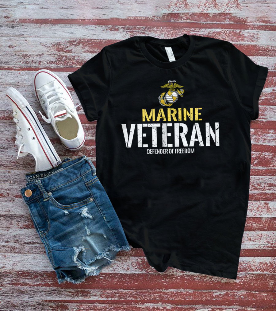The Marine Veteran Defender Of Freedom Shirt offers a regular fit. Made from 100% ring-spun cotton that is pre-shrunk to help maintain size and shape after washing. Features reinforced construction details for durability. Available in U.S. standard sizes S-5XL to accommodate various body types.