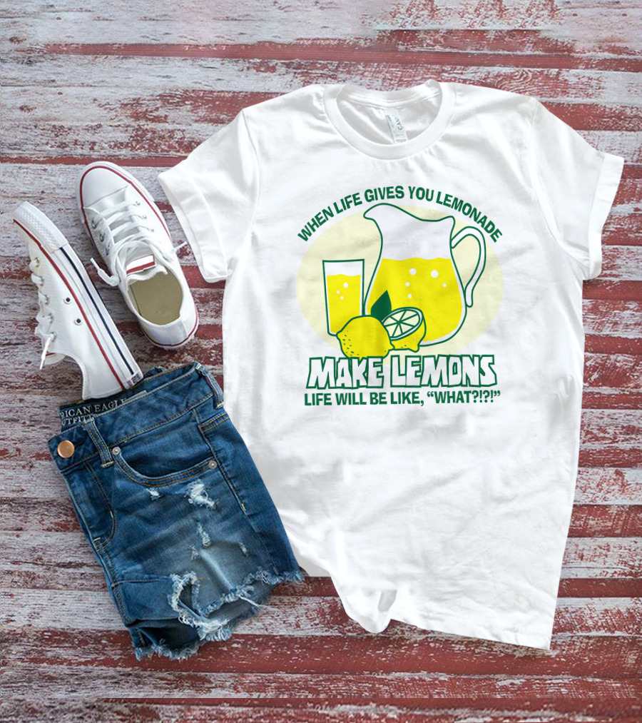 The WHEN LIFE GIVES YOU LEMONADE MAKE LEMONS LIFE WILL BE LIKE WHAT?? Shirt offers a regular fit. Made from 100% ring-spun cotton that is pre-shrunk to help maintain size and shape after washing. Features reinforced construction details for durability. Available in U.S. standard sizes S-5XL to accommodate various body types.