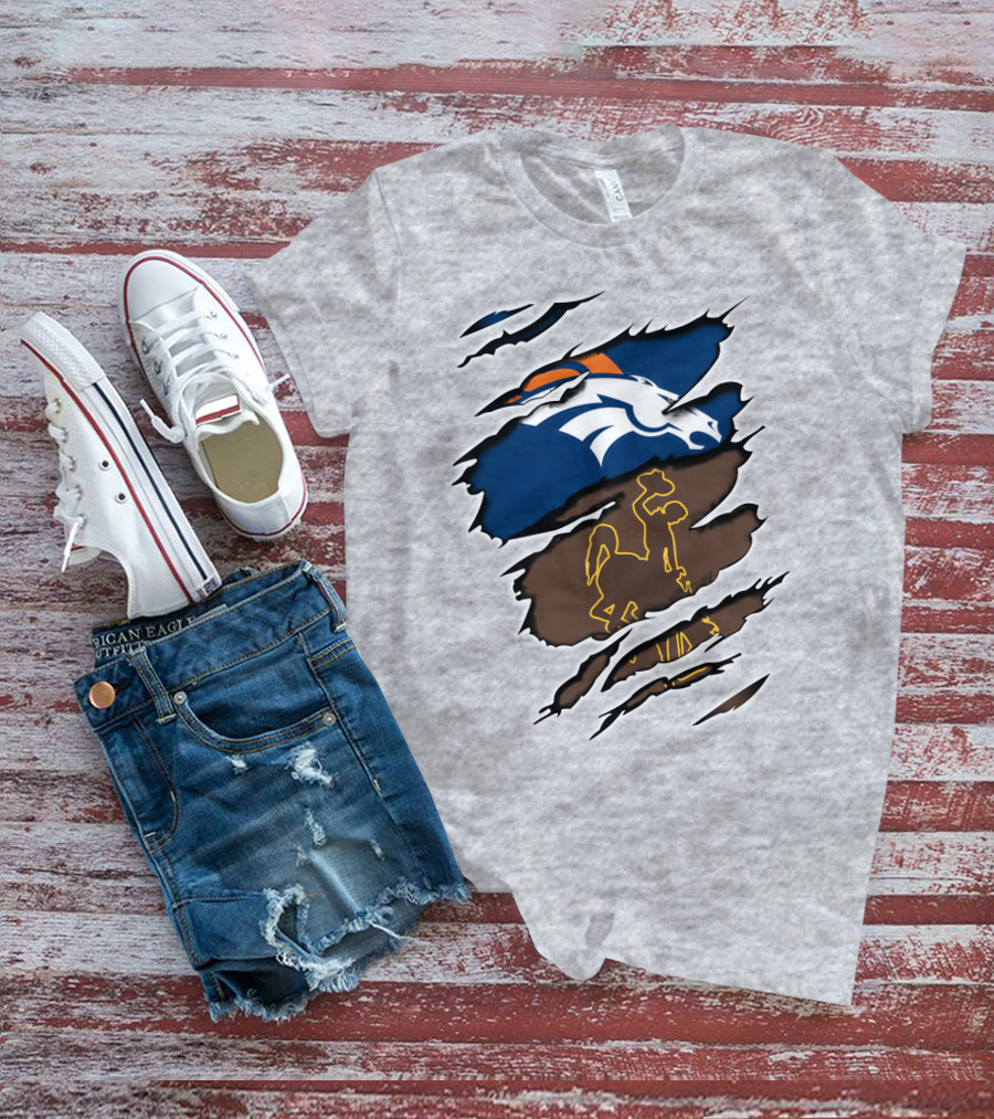 Denver Broncos Wyoming Cowboys Horse Rip T-Shirt