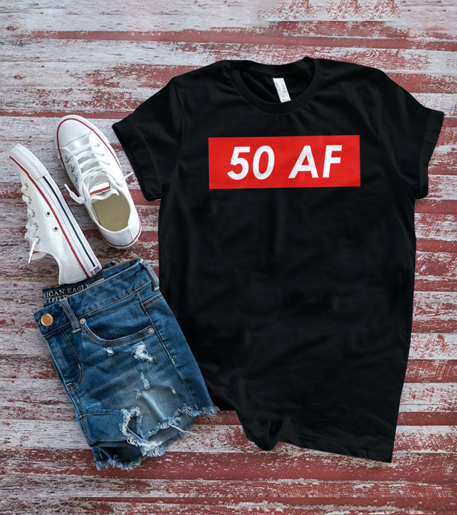The 50 AF Birthday Shirt offers a regular fit. Made from 100% ring-spun cotton that is pre-shrunk to help maintain size and shape after washing. Features reinforced construction details for durability. Available in U.S. standard sizes S-5XL to accommodate various body types.
