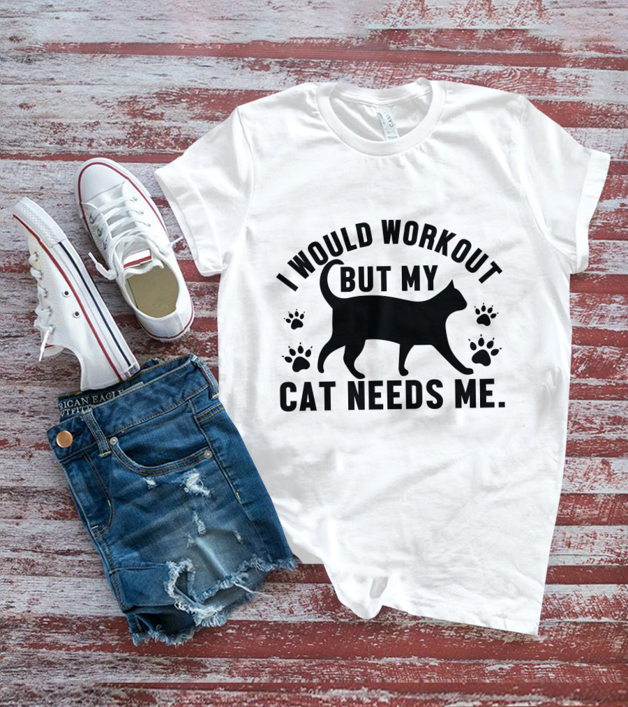 I Would Workout But My Cat Needs Me Silhouette With Paw Prints T-Shirt