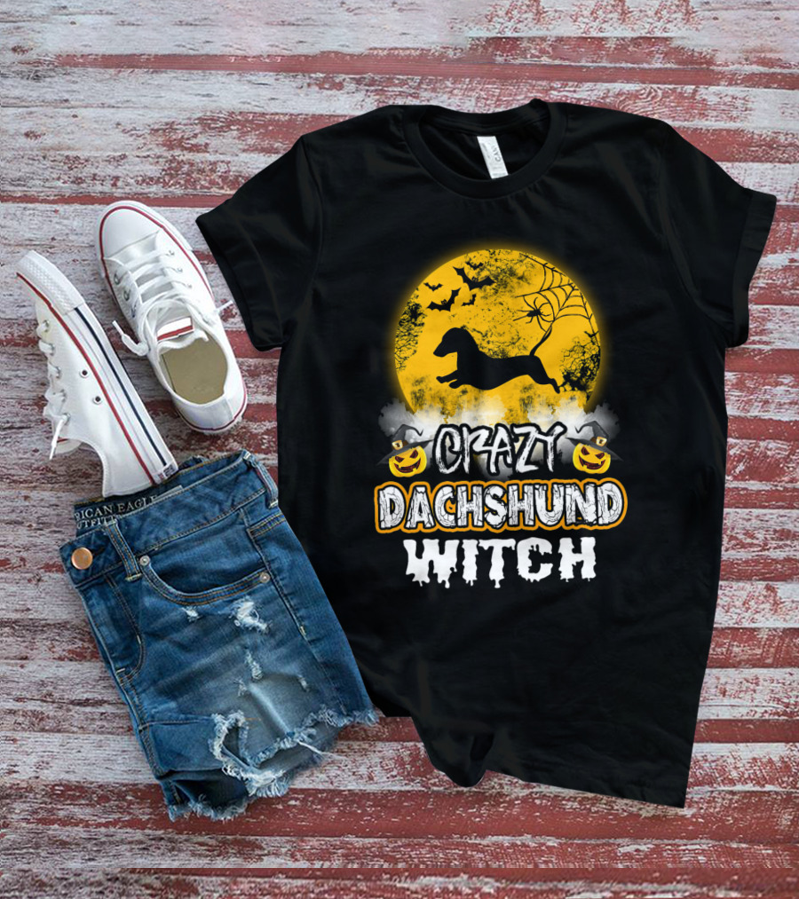 Crazy Dachshund Witch Moon Bats Pumpkin T-Shirt