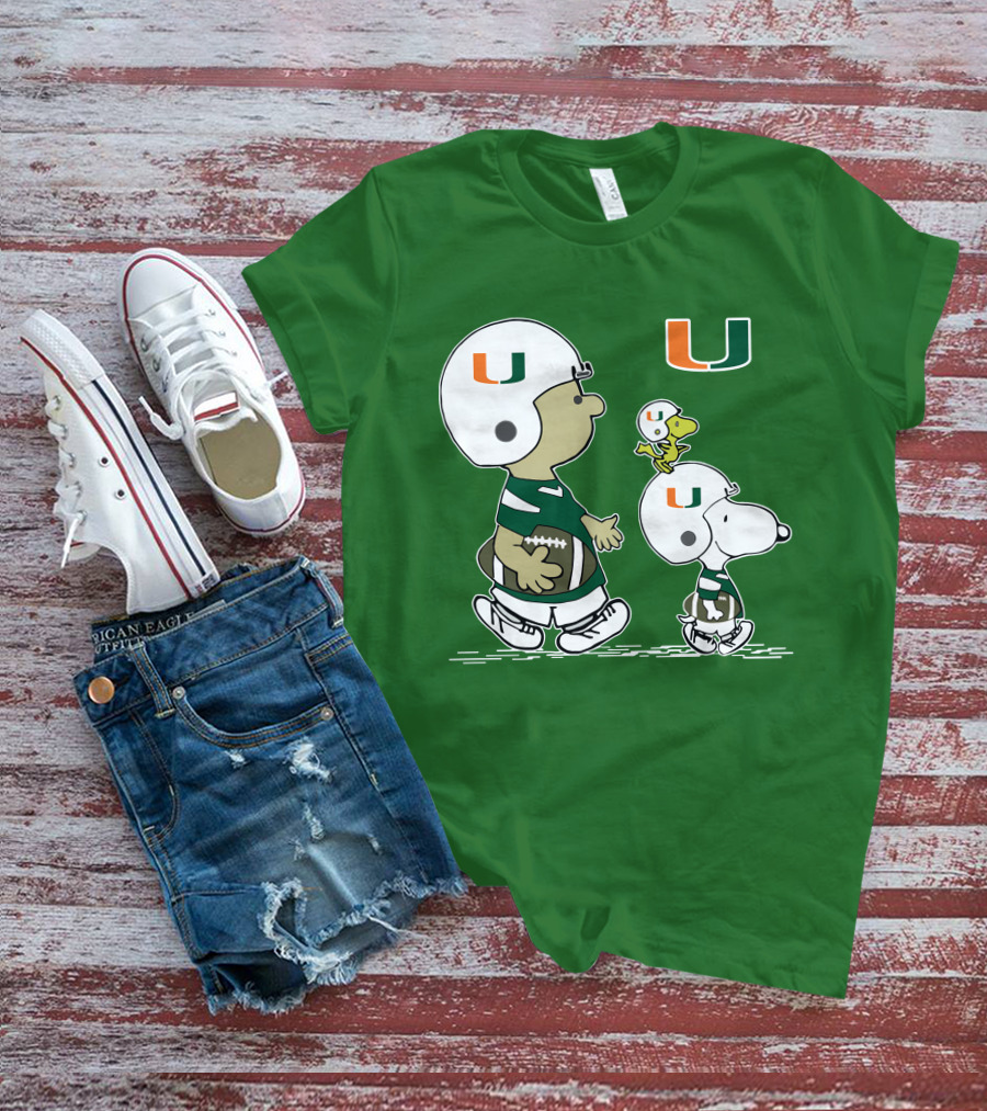 Miami Hurricanes Snoopy And Woodstock Football Helmets Peanuts Comic T-Shirt