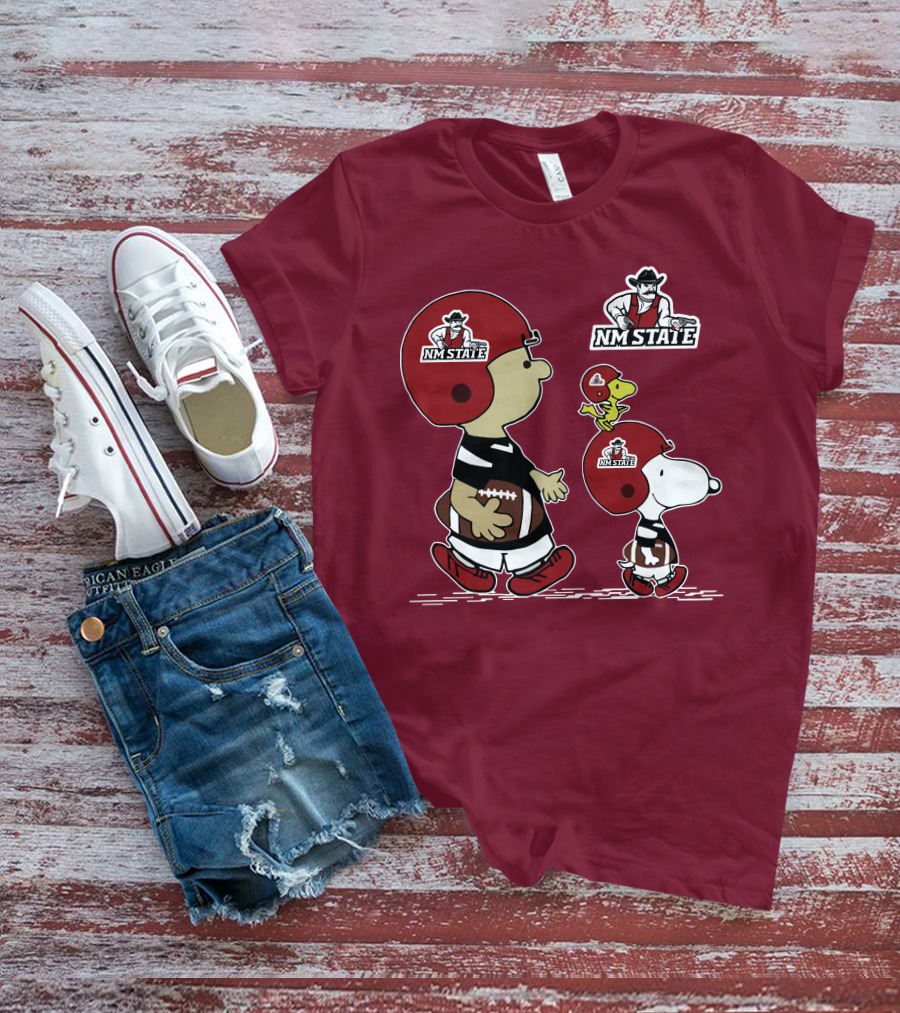 NM State Snoopy Football Helmet Peanuts Characters T-Shirt