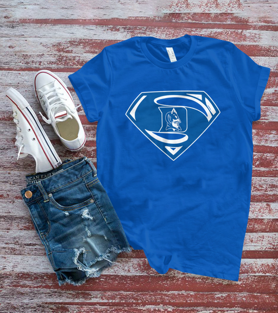 The Duke Blue Devils Superman Logo Mashup Shirt offers a regular fit. Made from 100% ring-spun cotton that is pre-shrunk to help maintain size and shape after washing. Features reinforced construction details for durability. Available in U.S. standard sizes S-5XL to accommodate various body types.