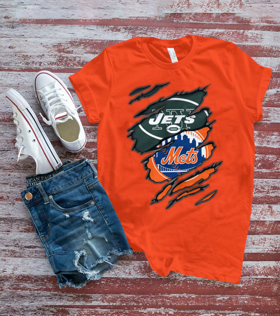 Jets Mets Nfl Mlb Ripped Logo Fusion T-Shirt