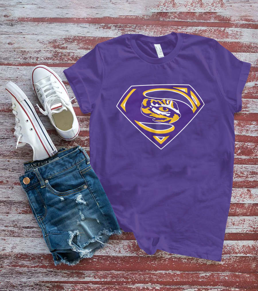 Superman LSU Tigers Logo Purple And Gold Tiger Eye T-Shirt