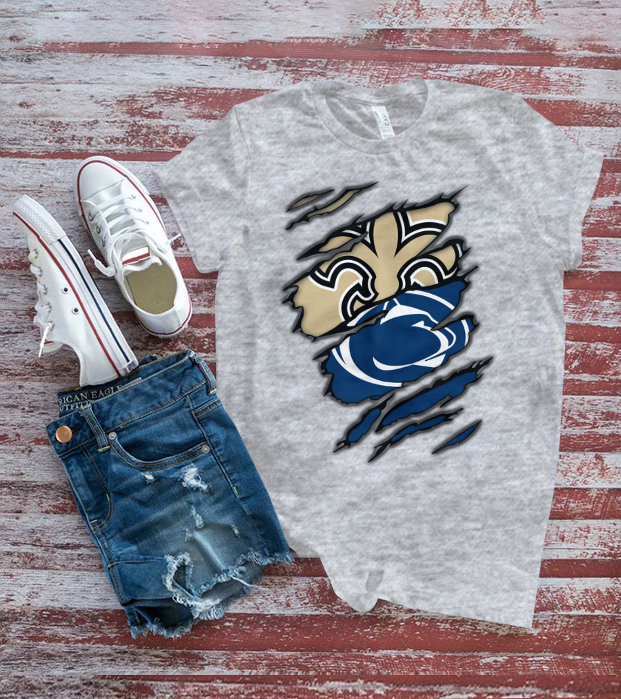 Saints Penn State Logo Combination Torn Effect T-Shirt