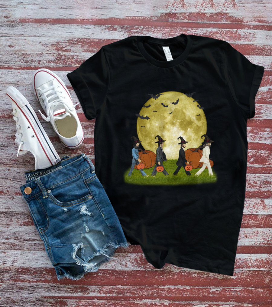 Abbey Road Halloween Crossing With Pumpkins And Witches Under Full Moon T-Shirt