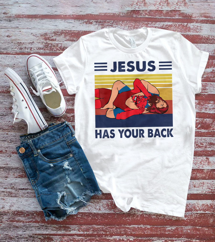 Jesus Wrestling JSatan Retro Style Has Your Back T-Shirt