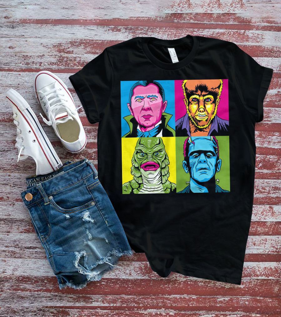 Dracula Frankenstein Wolfman Creature Horror Pop Art Icons T-Shirt