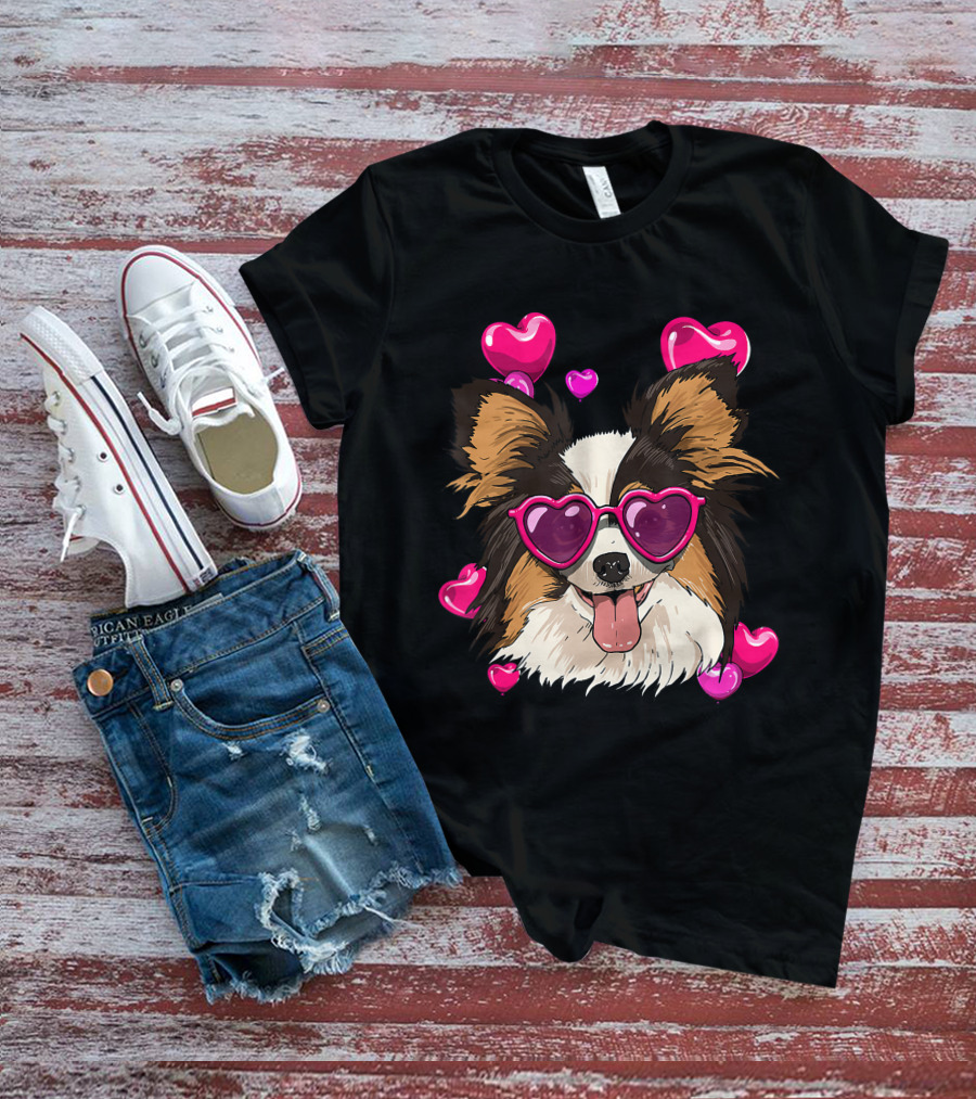 The Papillon Heart Sunglasses Pink Hearts Valentines Day Shirt offers a regular fit. Made from 100% ring-spun cotton that is pre-shrunk to help maintain size and shape after washing. Features reinforced construction details for durability. Available in U.S. standard sizes S-5XL to accommodate various body types.