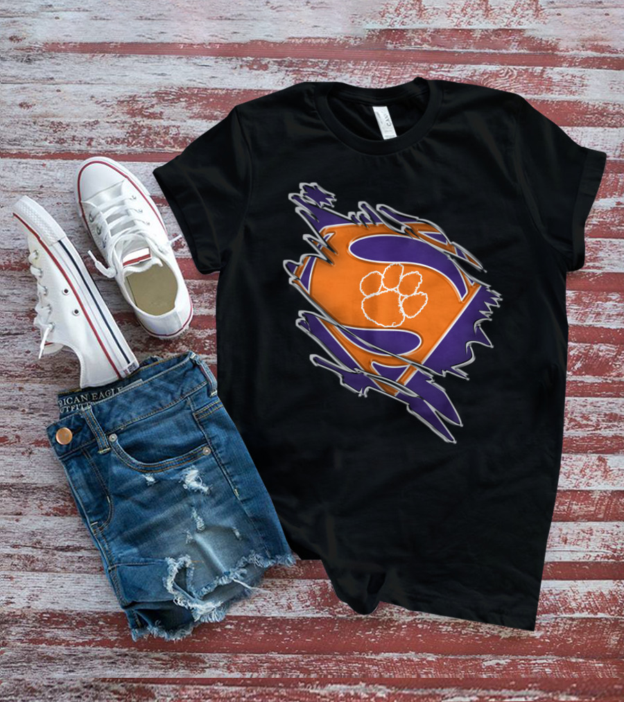 The Clemson Tigers Superman Paw Shirt offers a regular fit. Made from 100% ring-spun cotton that is pre-shrunk to help maintain size and shape after washing. Features reinforced construction details for durability. Available in U.S. standard sizes S-5XL to accommodate various body types.