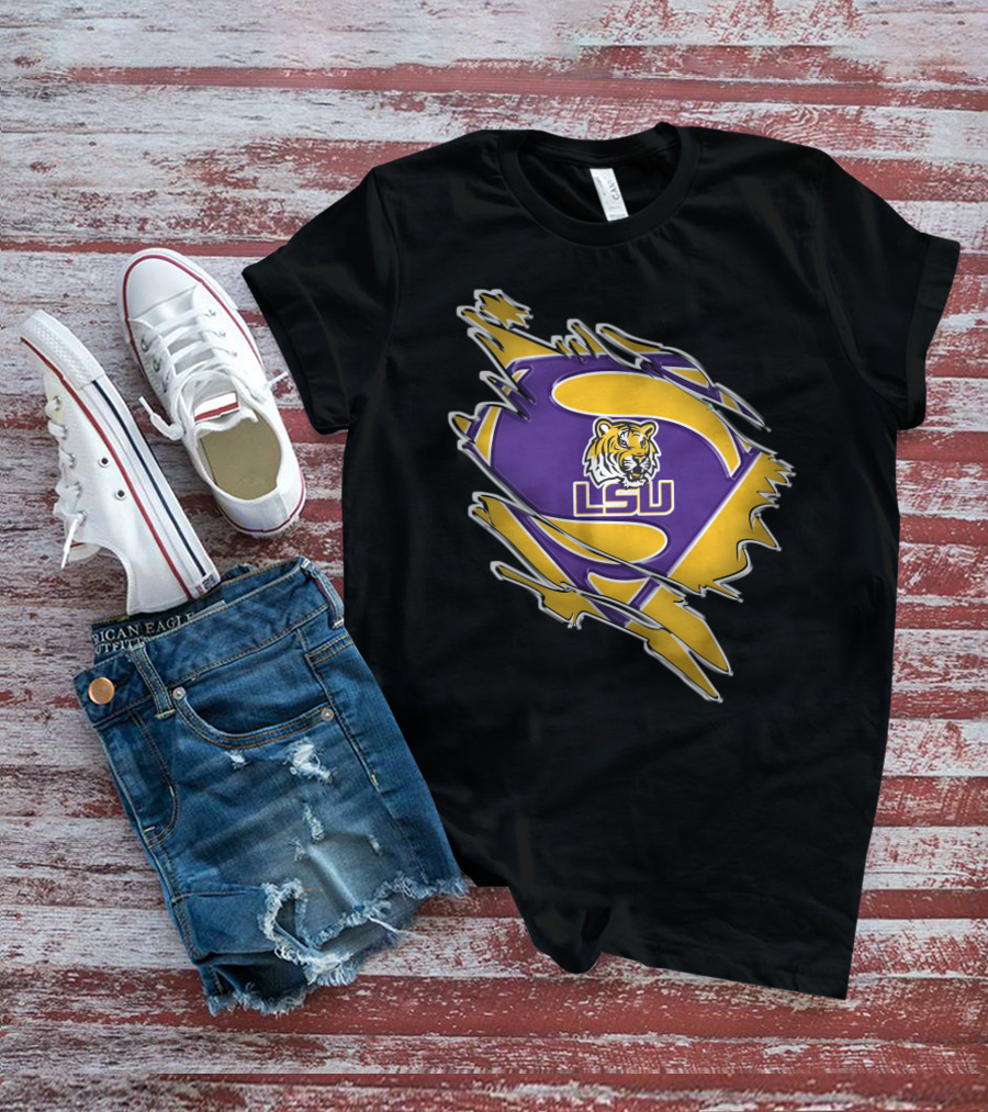 The LSU Tigers Superman Logo Rip Shirt offers a regular fit. Made from 100% ring-spun cotton that is pre-shrunk to help maintain size and shape after washing. Features reinforced construction details for durability. Available in U.S. standard sizes S-5XL to accommodate various body types.