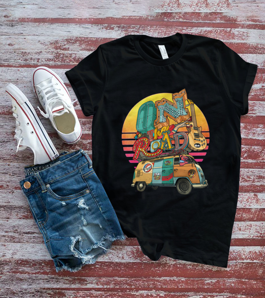 On The Road Retro Sunset Van And Guitar Adventure T-Shirt