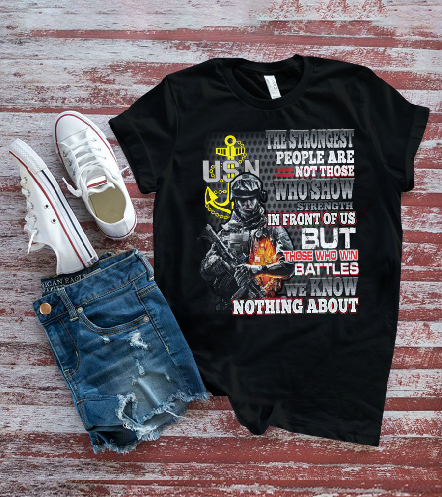 The Usn The Strongest People Are Not Those Who Show Strength In Front Of Us But Those Who Win Battles We Know Nothing About Shirt offers a regular fit. Made from 100% ring-spun cotton that is pre-shrunk to help maintain size and shape after washing. Features reinforced construction details for durability. Available in U.S. standard sizes S-5XL to accommodate various body types.