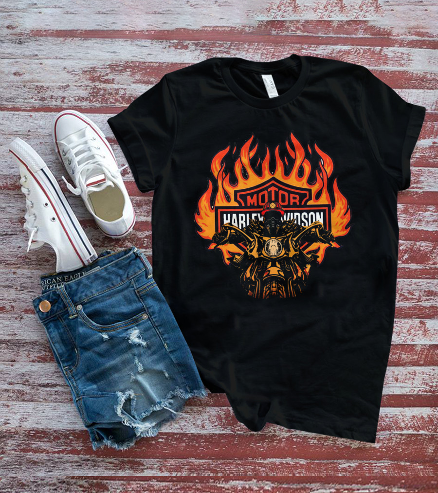 The Harley Davidson Motor Flames Shirt offers a regular fit. Made from 100% ring-spun cotton that is pre-shrunk to help maintain size and shape after washing. Features reinforced construction details for durability. Available in U.S. standard sizes S-5XL to accommodate various body types.