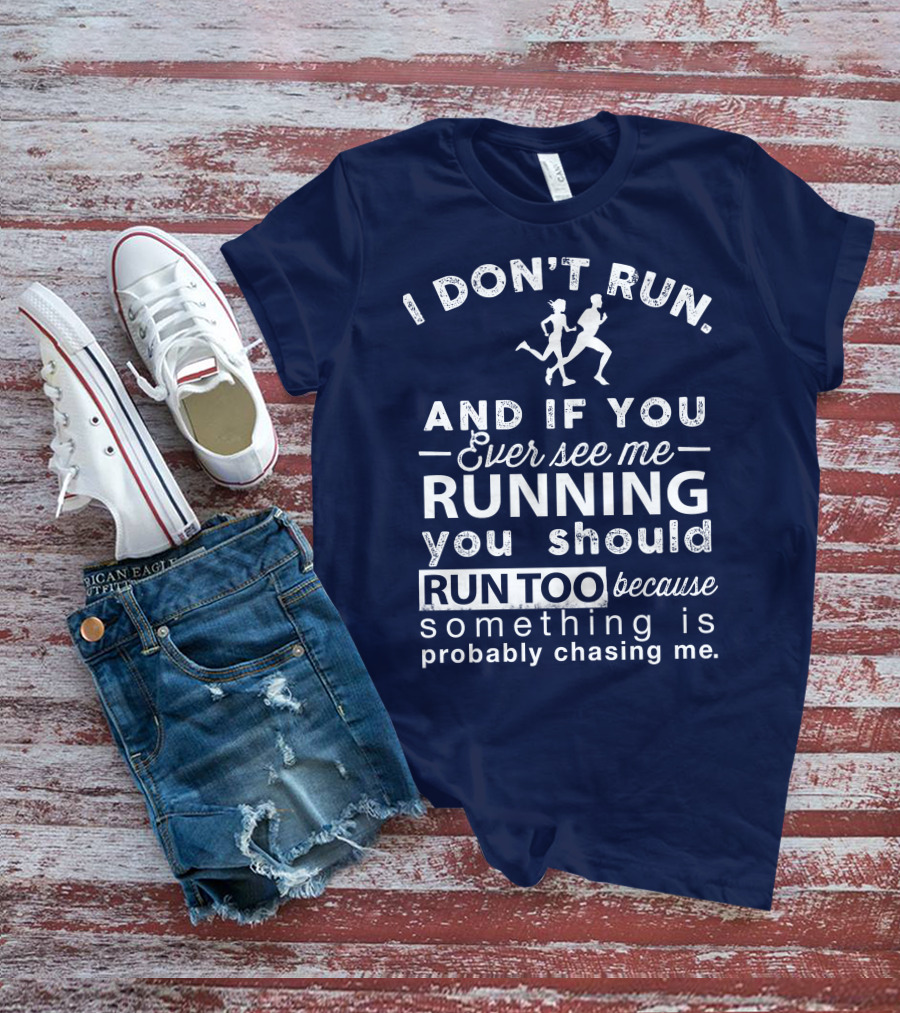 The I Don't Run And If You Ever See Me Running You Should Run Too Because Something Is Probably Chasing Me Shirt offers a regular fit. Made from 100% ring-spun cotton that is pre-shrunk to help maintain size and shape after washing. Features reinforced construction details for durability. Available in U.S. standard sizes S-5XL to accommodate various body types.
