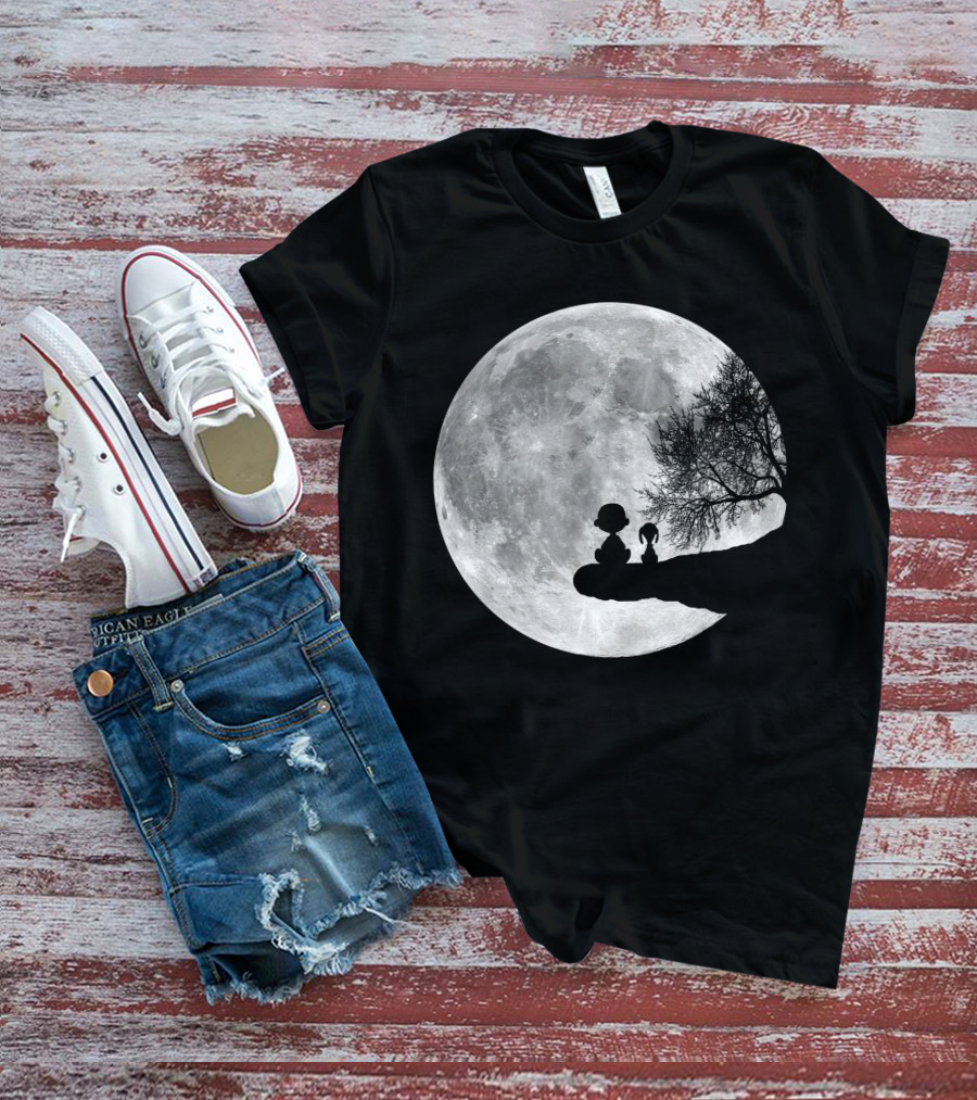 Snoopy And Charlie Moonlit Silhouette Pals On The Edge T-Shirt