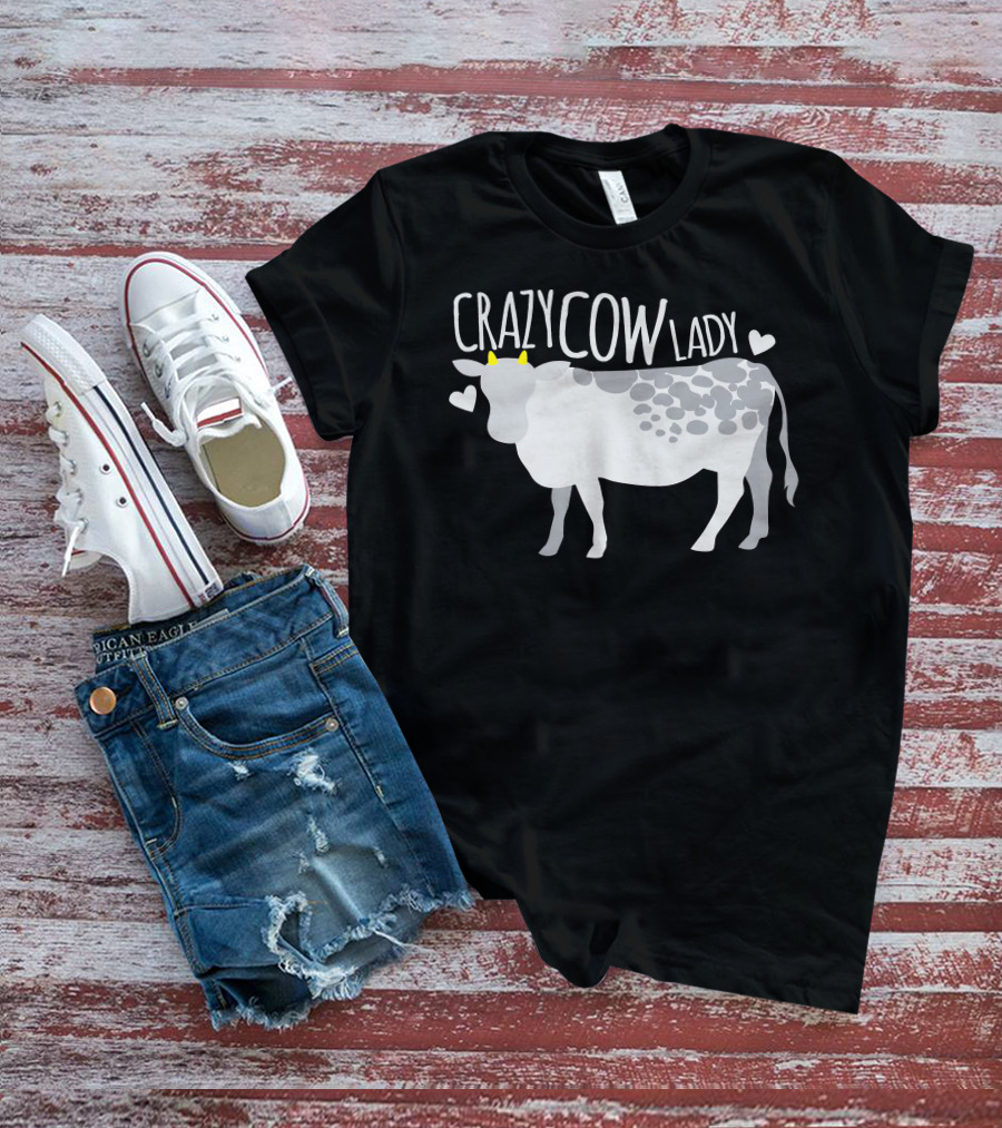 CRAZY COW LADY Hearts And Cartoon Cow T-Shirt