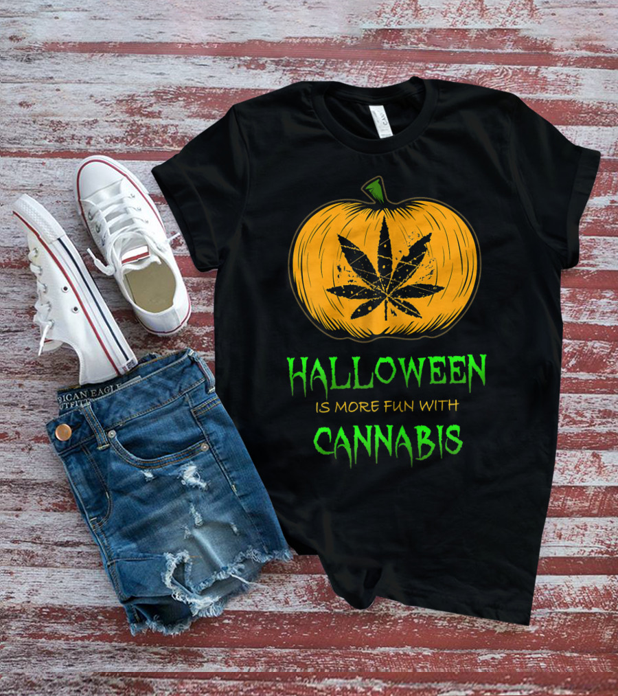 Halloween Is More Fun With Cannabis Pumpkin Leaf T-Shirt