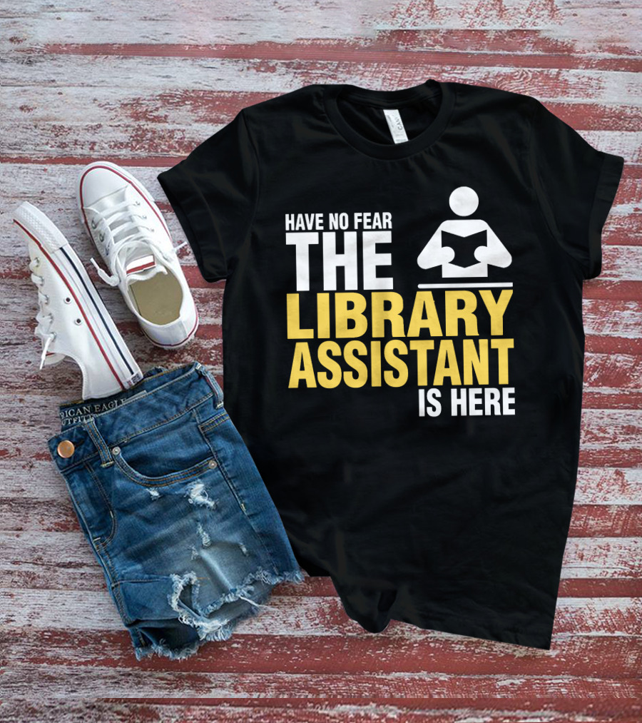 Have No Fear The Library Assistant Is Here Bold Text With Book T-Shirt