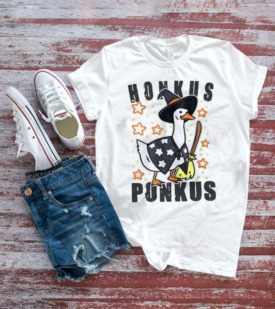 Honkus Ponkus Duck In Witch Costume With Stars And Broom T-Shirt