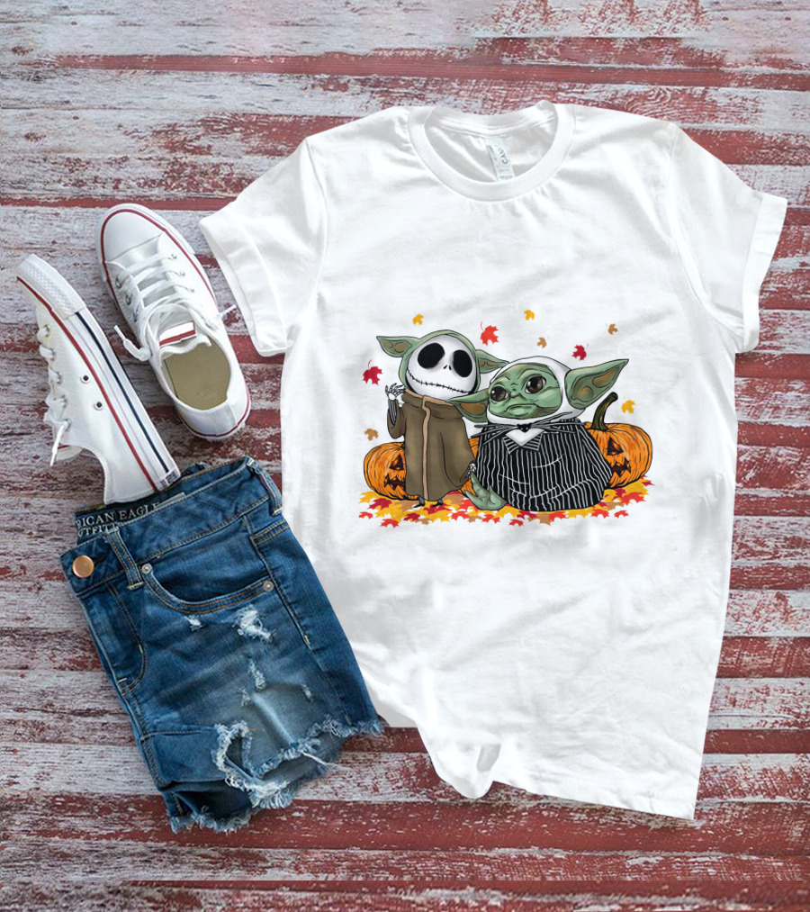 The Baby Yoda and Jack Skellington in Halloween Pumpkin Scene Shirt offers a regular fit. Made from 100% ring-spun cotton that is pre-shrunk to help maintain size and shape after washing. Features reinforced construction details for durability. Available in U.S. standard sizes S-5XL to accommodate various body types.