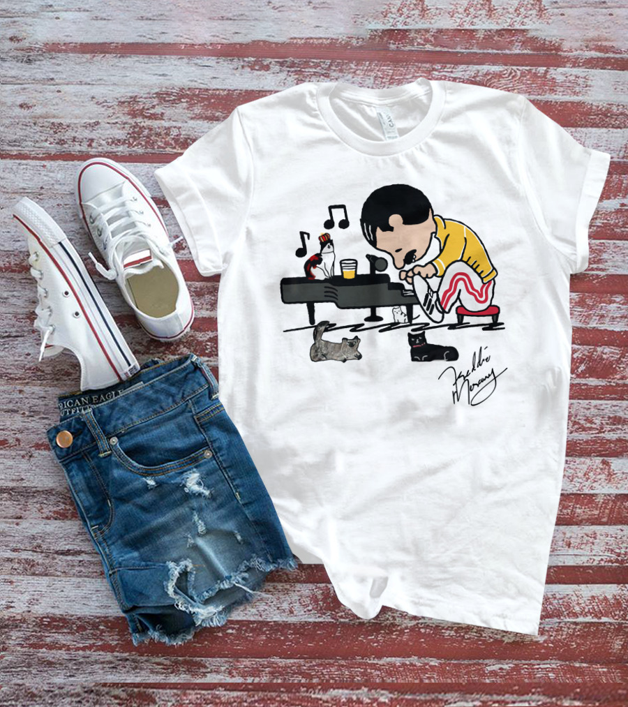 Freddie Mercury Signature With Cats And Piano Playful T-Shirt