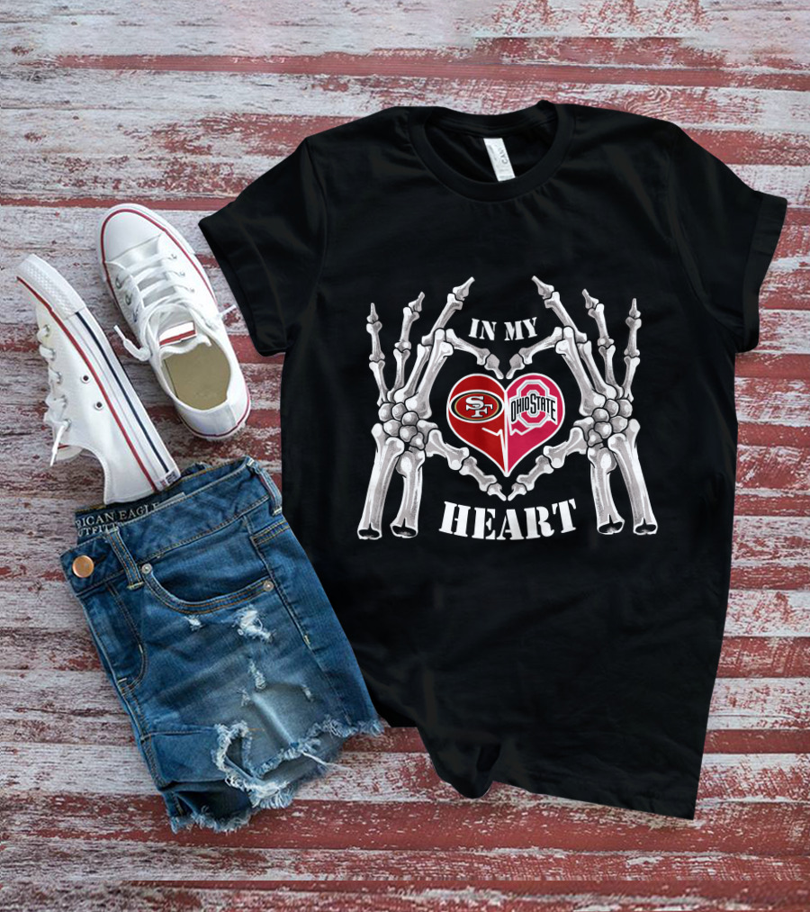 San Francisco 49ers Ohio State Buckeyes In My Heart Halloween Skeleton T-Shirt