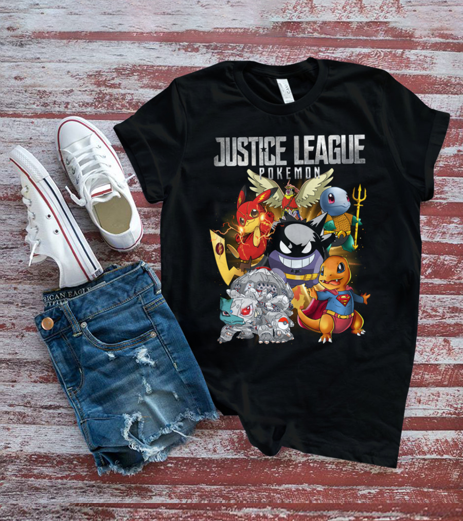 The Justice League Pokemon Mashup Characters Shirt offers a regular fit. Made from 100% ring-spun cotton that is pre-shrunk to help maintain size and shape after washing. Features reinforced construction details for durability. Available in U.S. standard sizes S-5XL to accommodate various body types.