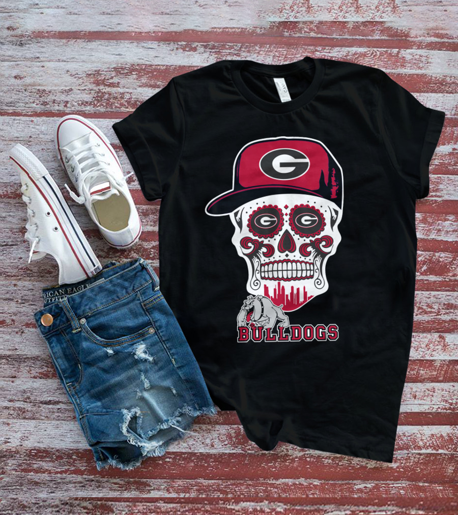 Georgia Bulldogs Sugar Skull Hat Bulldogs T-Shirt