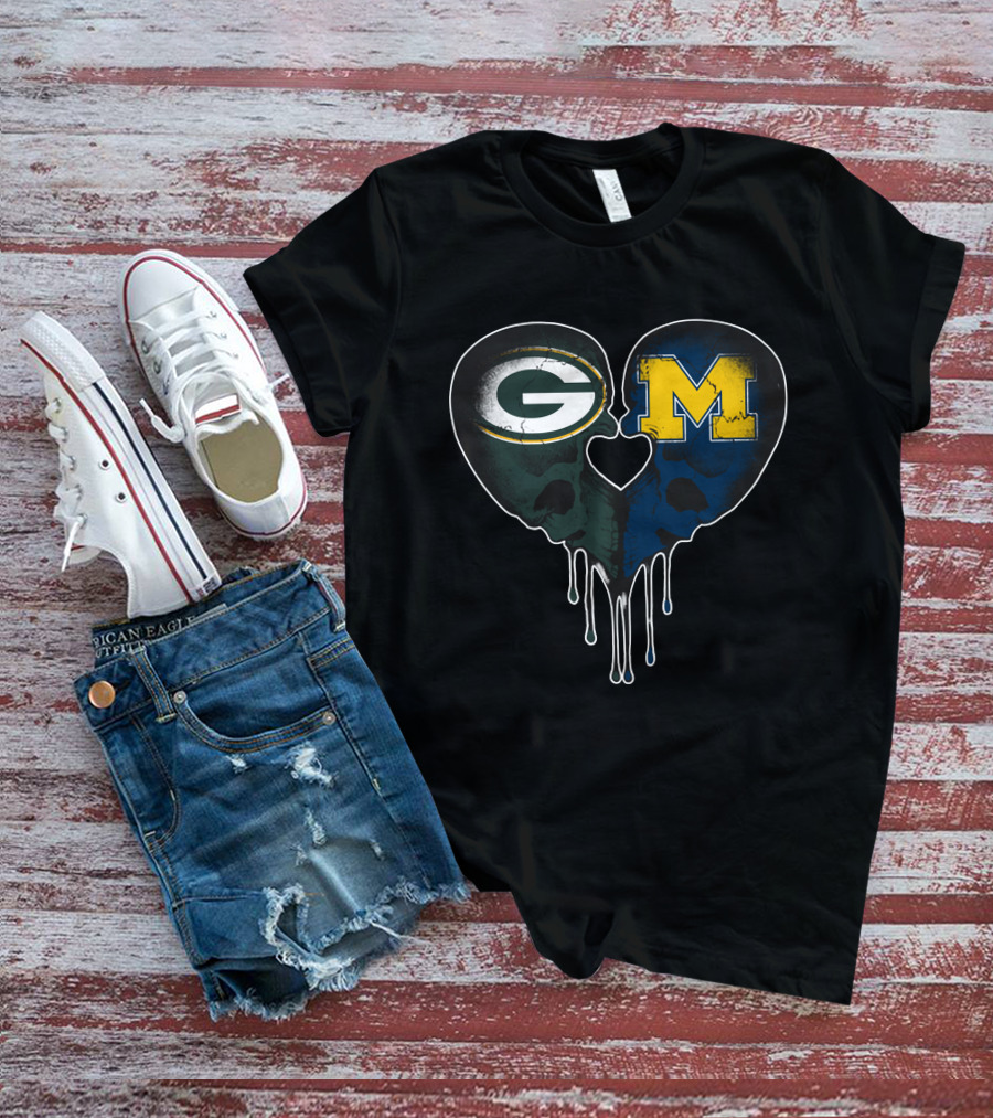 Packers And Michigan Wolverines Heart Fusion T-Shirt