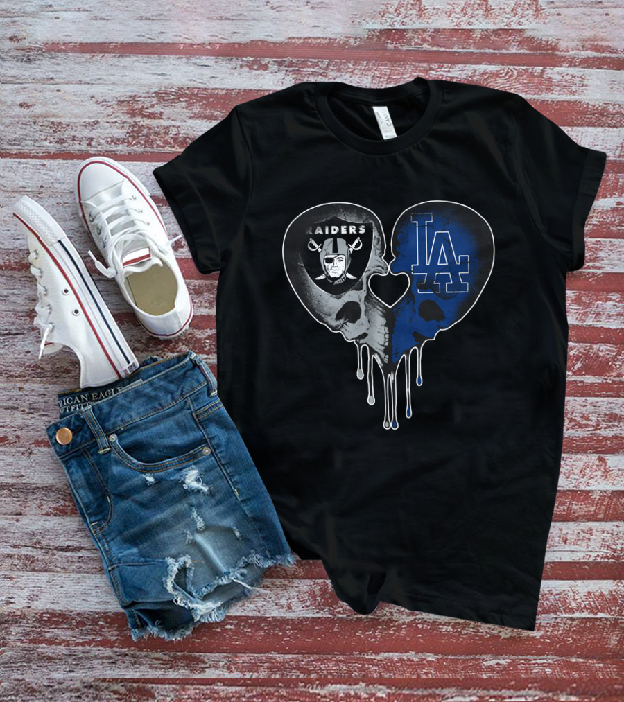 Raiders Dodgers Skull Heart Fusion T-Shirt
