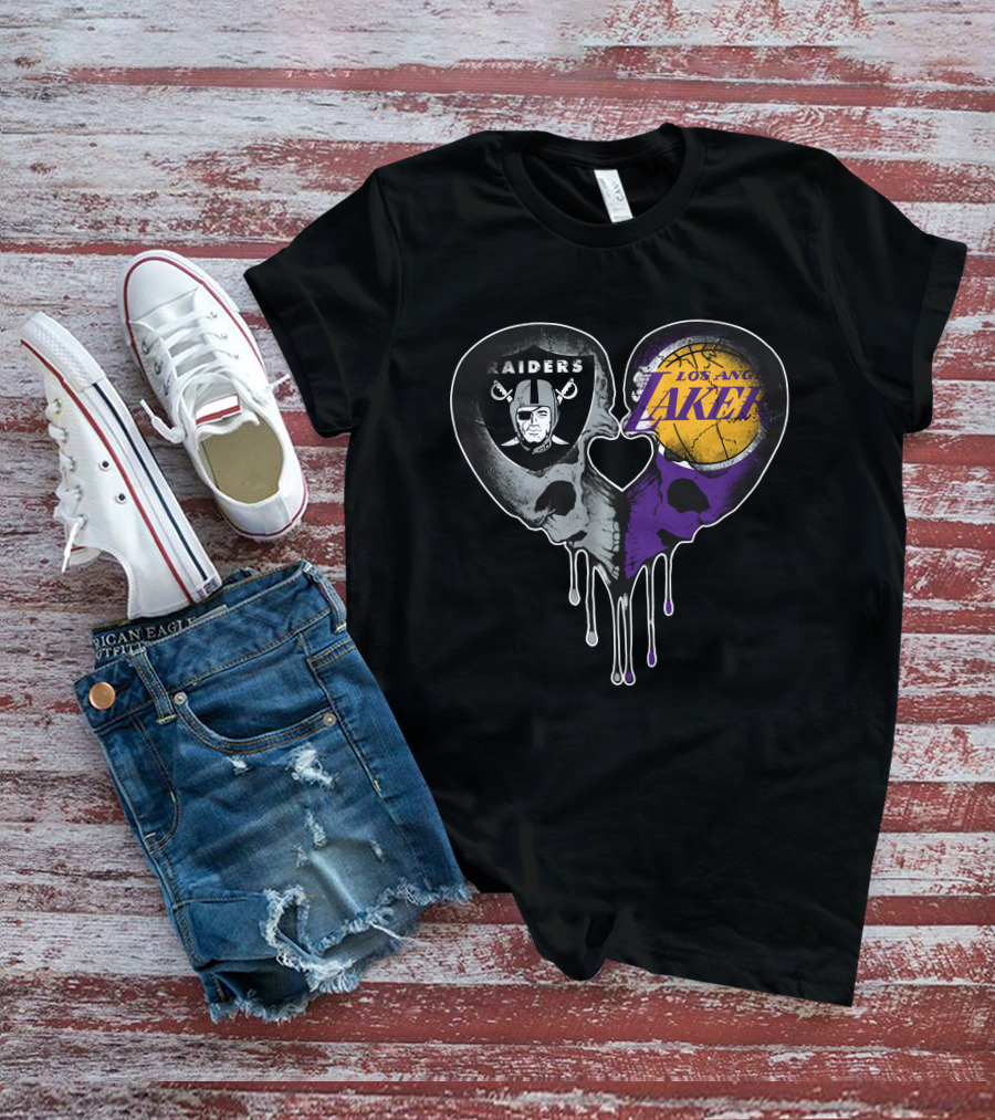 Raiders Lakers Skull Heart Fusion T-Shirt