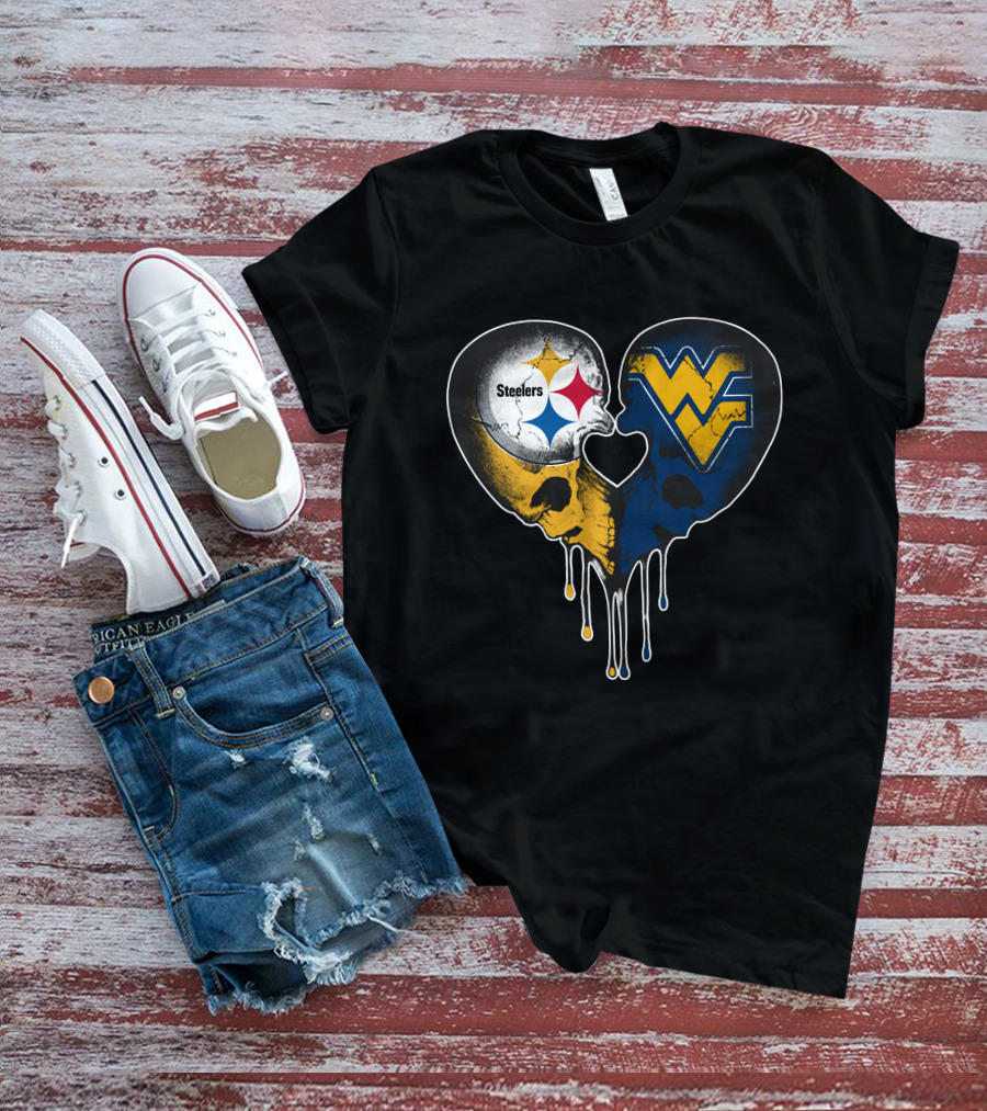 Steelers WVU Heart Skull Logo Fusion T-Shirt