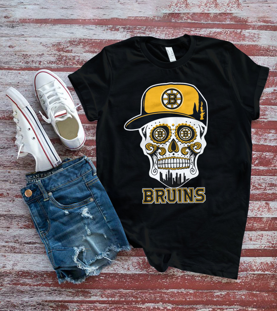 Boston Bruins Skull Iconic Hockey Hat T-Shirt