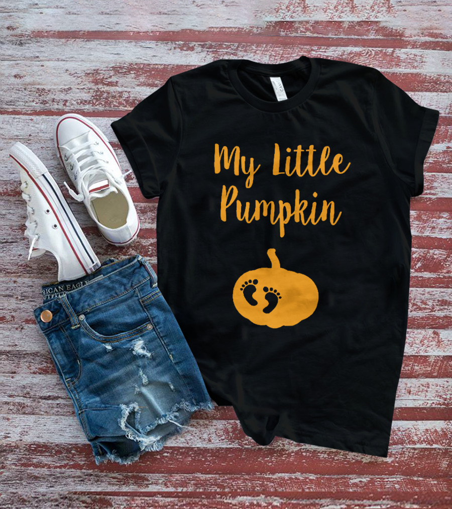 The My Little Pumpkin Baby Footprints Shirt offers a regular fit. Made from 100% ring-spun cotton that is pre-shrunk to help maintain size and shape after washing. Features reinforced construction details for durability. Available in U.S. standard sizes S-5XL to accommodate various body types.