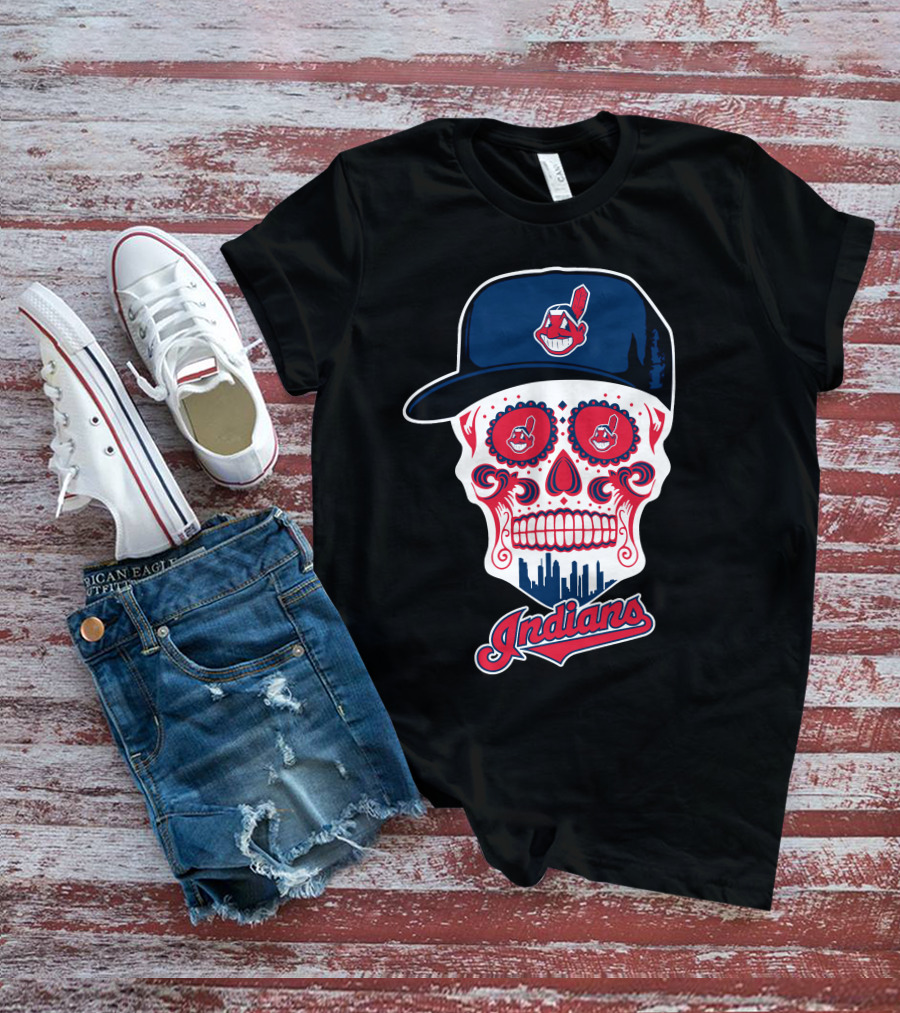 Cleveland Indians Sugar Skull With Baseball Cap And Skyline T-Shirt