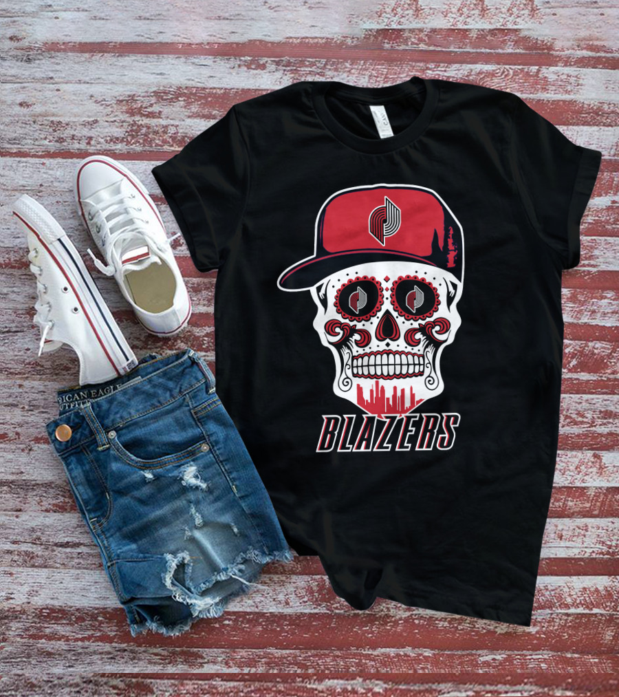 Blazers Skull With Hat And Cityscape Elements T-Shirt