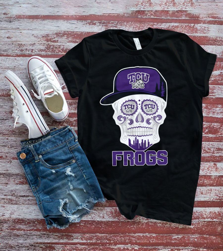 Tcu Horned Frogs Skull With Hat And City Skyline T-Shirt
